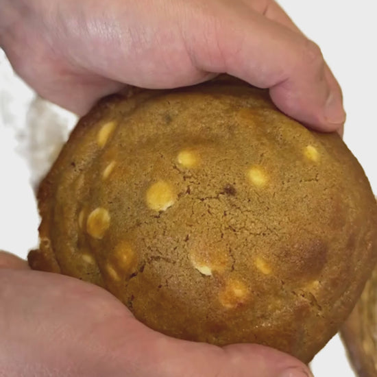 Its golden, crisp exterior gives way to a soft, gooey centre, creating a luxurious texture contrast that elevates the classic cookie experience. Whether you're a white chocolate devotee or simply in the mood for something sweet and sophisticated, The White Chocolate Dome is a timeless treat worth savouring.
